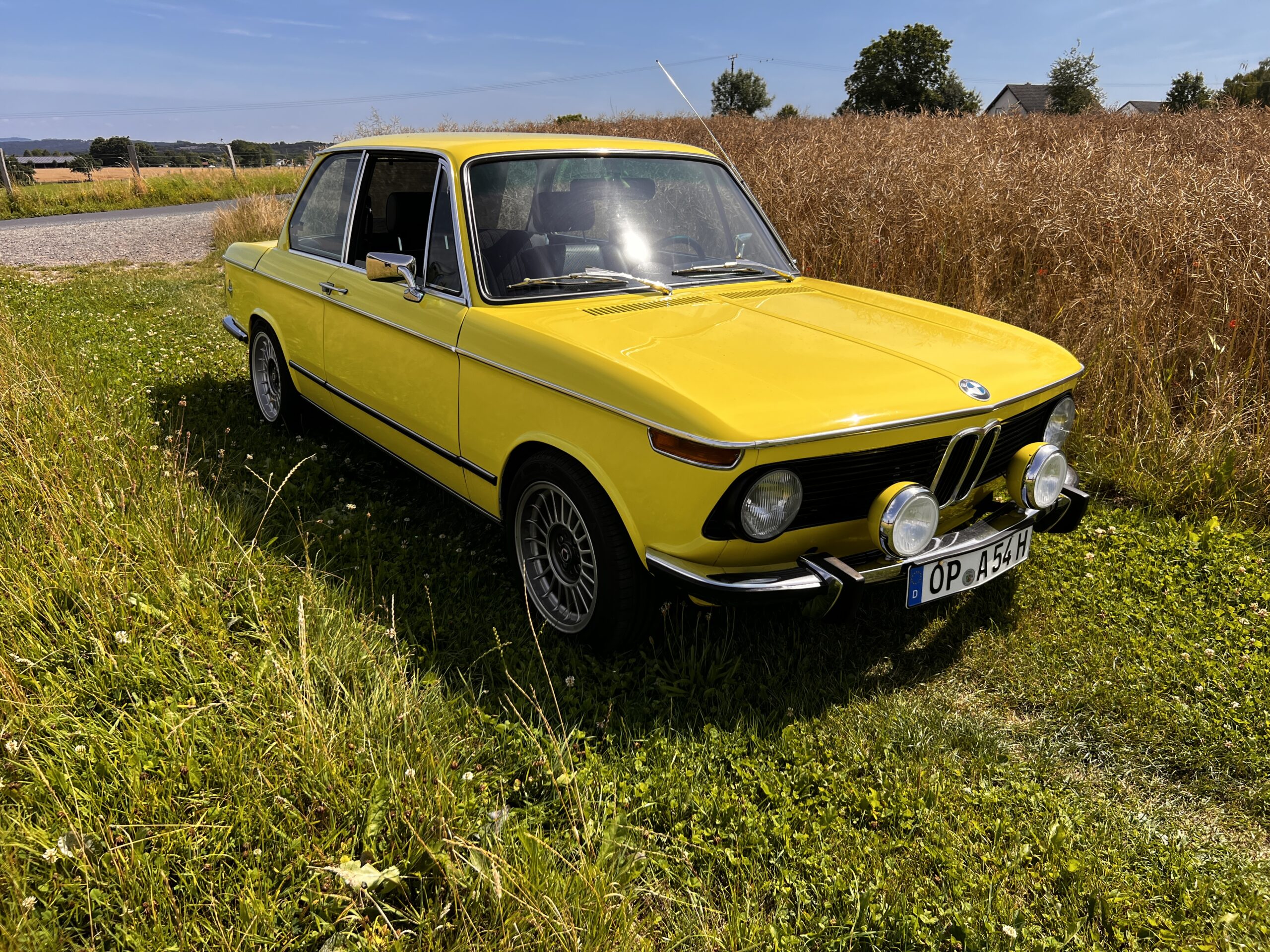 Produktionsdatum 17.05.1974 und Auslieferung am 04.06.1974 an die BMW-Abteilung für Vertrieb an Mitarbeiter als 2002 mit 100 PS. Es war das Jahr der Fußballweltmeisterschaft in Deutschland und in der Farbe „golf-gelb“ repräsentiert dieser 02 perfekt den 70er Jahre-Zeitgeist.