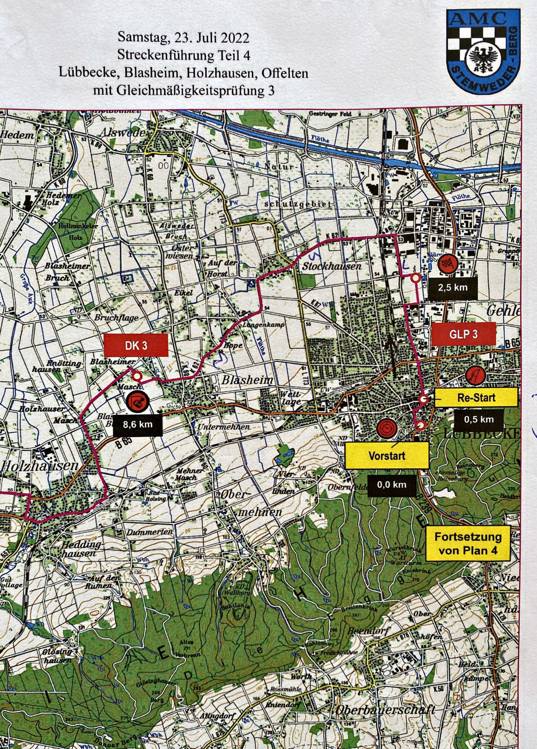 Unser Problem war nun ZK3, denn auch hier gab es eine Behinderung. Ein Radlader belud in einer Tempo 30 Zone einen LKW. Das kostete uns 2 Minuten. Wenig später dann noch ein Paketauto von DHL, welches nicht passierbar war. Prompt kassierten wir eine Strafminute. (Interessant, dass die nach uns gestarteten keine Strafminute bekamen, hätten sie doch in unserer nun eingetragenen Minute sein müssen – waren sie aber nicht – egal.) Bei GLP vier musste eine Strecke von 36 km in 10 Minuten 40 Sekunden erledigt werden, was sich nicht als Problem darstellte.