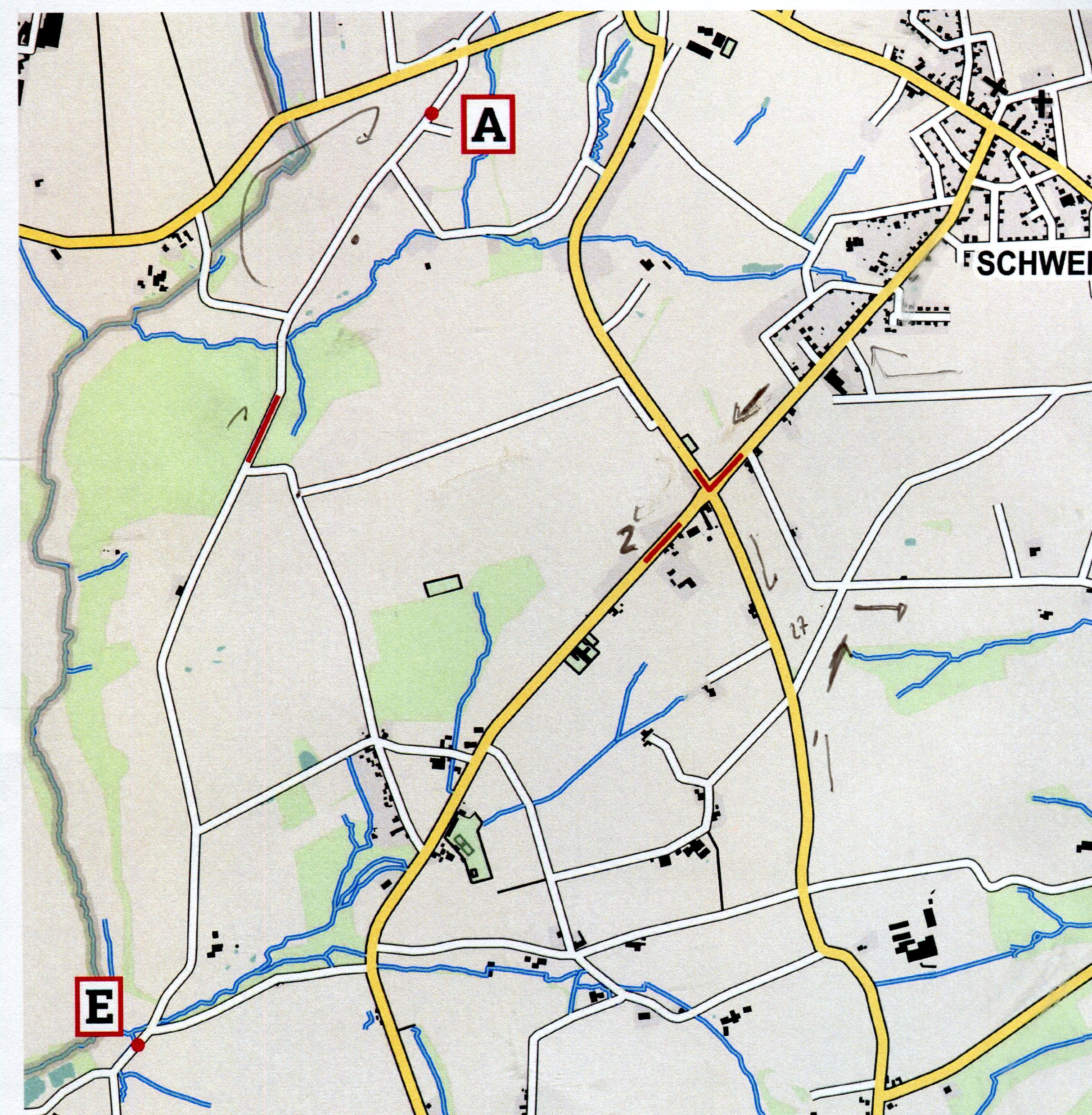 Nach dem Start am Pivittskrug ging es erstmal in der 6-Minuten-WP zum bekannten Wendehammer Erdbrüggenkamp. Die anschließende Ori war vergleichsweise „einfach“ gestaltet, enthielt aber auch die erste geheime SZP. Am Ende, vor dem E, hatte der Fahrtleiter dann noch den selber Kartenfehler platziert, wie bei der Moorfahrt. Beinahe wären wir wieder drauf reingefallen.
