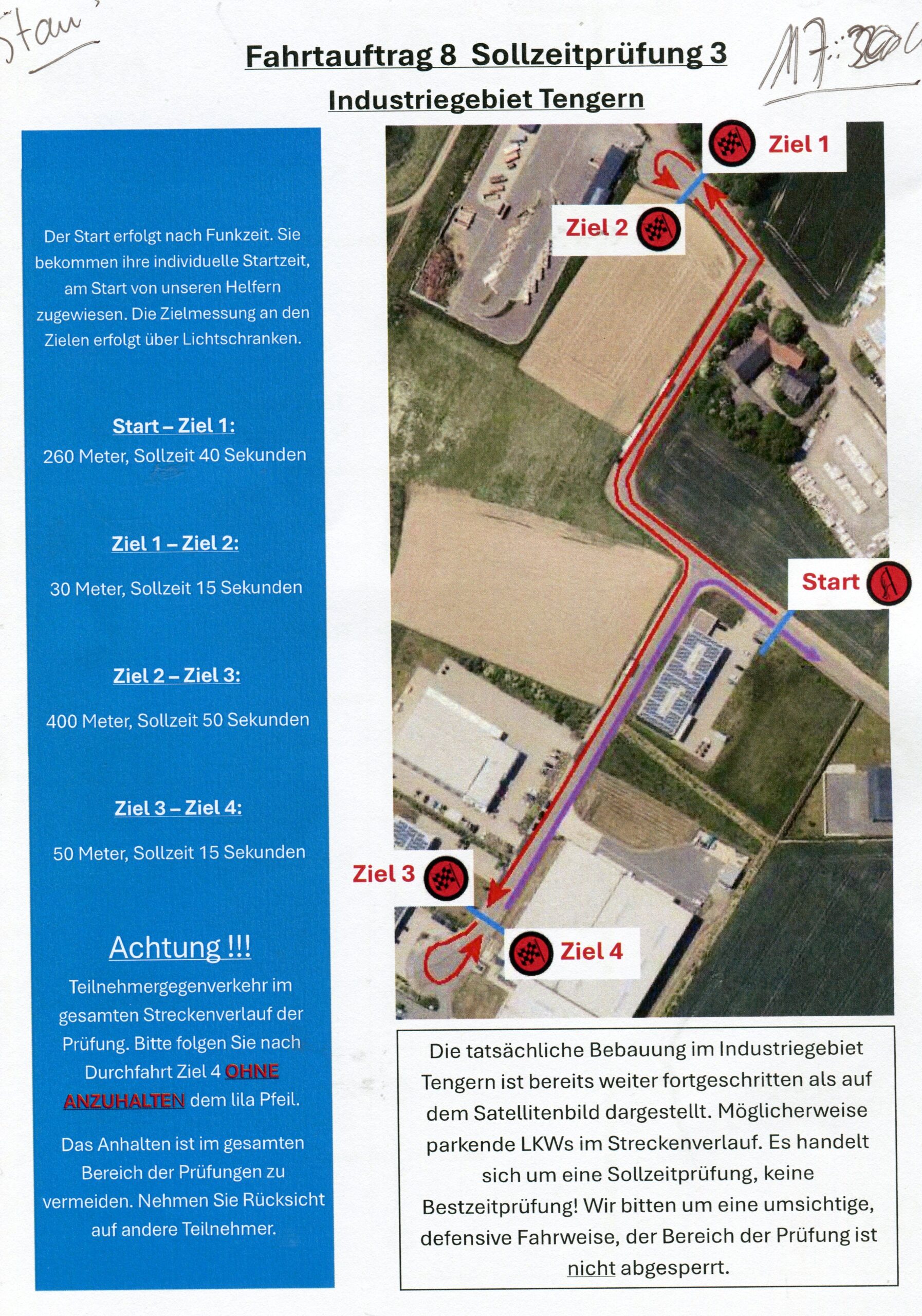 Neben den schönen Orientierungsaufgaben kann der MSC Rothenuffeln auch bei den (Zeit-)Prüfungen überzeugen. Zum einen wurde auf die oftmals nervigen und zum Brettern animierenden ZKs verzichtet. Zum anderen gab es insgesamt fünf sehr gut gemacht Sollzeitprüfungen. Am Start direkt eine 6-Minuten-SZP bis zum Wendehammer Erdbrüggenkamp, dann noch eine 6-Minuten-SZP ab Mercedes Finkemeier, eine 4fach WP im Gewerbegebiet sowie als Höhepunkt gleich drei geheime Sollzeitprüfungen über je 6 Sekunden im Streckenverlauf. Gerade diese WPs waren super gemacht und toll in den Streckenverlauf integriert. Extremer Adrenalinschub und lauter Schrei „geheim! blau! geheim!“, wenn ein solches Schild entdeckt wurde.